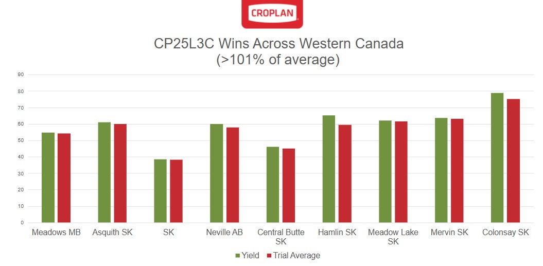 CP25L3C and CP24L3C were both included in a plethora of farmer field trials and owner organized trials across Western Canada in 2025.