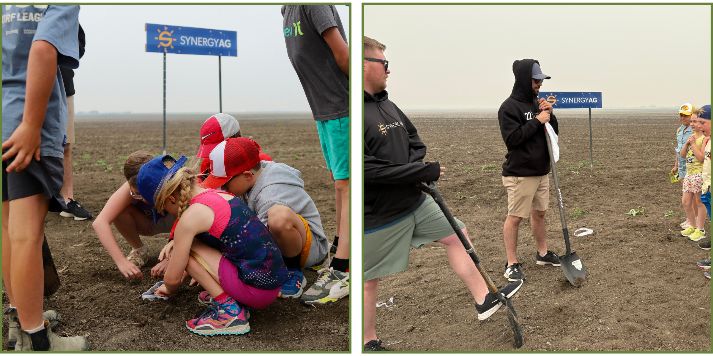 Synergy AG partnered with Agriculture in the Classroom Saskatchewan to expand the Food Farm program, a hands-on learning experience that connects students directly to agriculture. Grade three and four students explore the full food cycle through interactive stations led by volunteers, farmers, and Synergy AG staff.